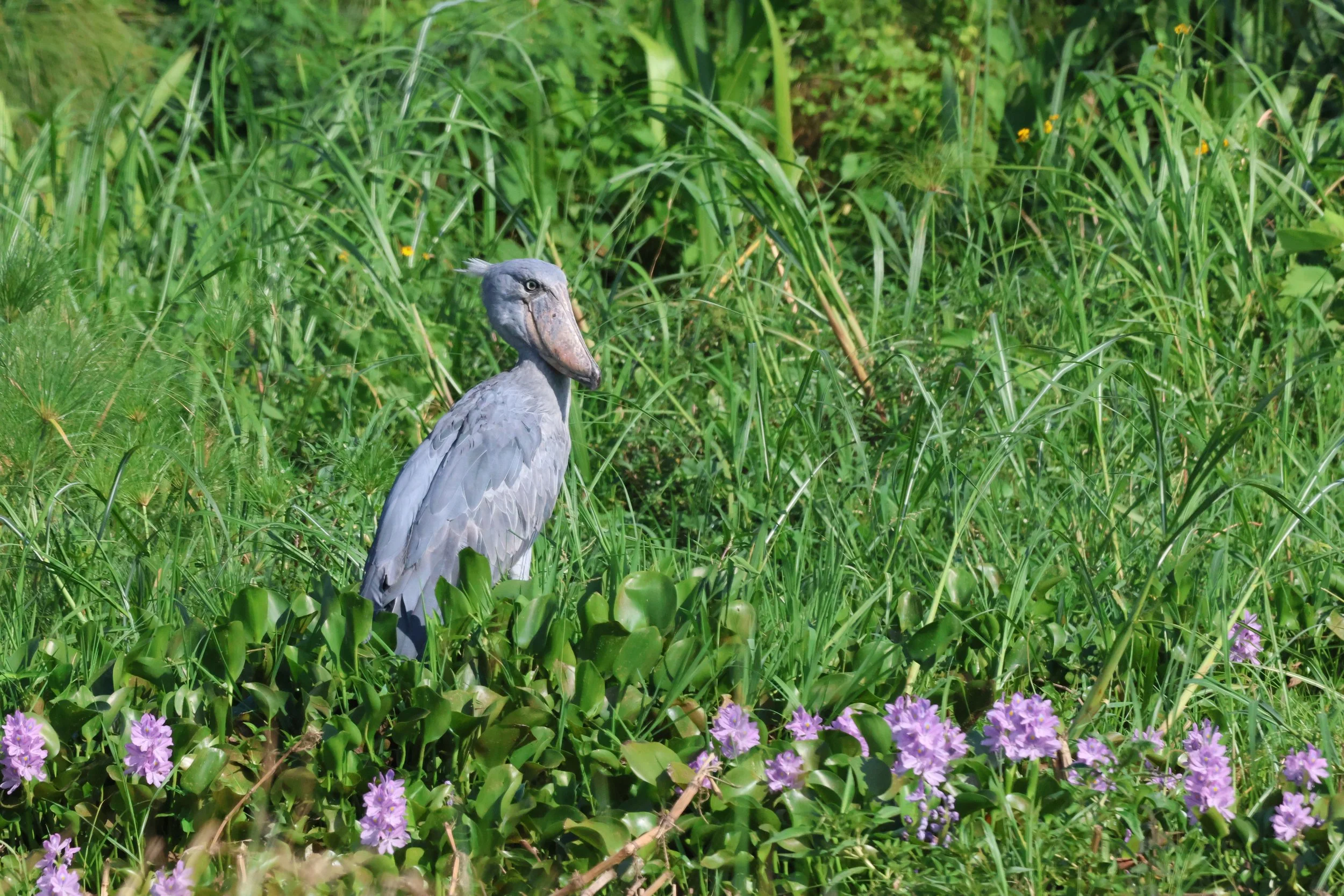 The most accessible location is Mabamba Bay Wetlands on Lake Victoria, just a short distance from Entebbe, where early morning canoe trips through papyrus channels offer remarkably reliable sightings. But perhaps the most dramatic Shoebill experience is at the Albert Delta in Murchison Falls National Park, where the Victoria Nile opens into Lake Albert. Here, boat safaris through the expansive wetlands offer what many consider the best opportunity to see Shoebills anywhere in Africa, often with elephants, hippos, and crocodiles as a backdrop. The dry season months (December to February and June to September) are particularly productive, when lower water levels concentrate prey and make the birds easier to spot. This is where I had my amazing Shoebill sightings!